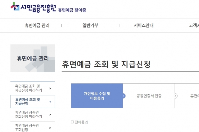 - 휴면예금 찾아주기 서비스 이용